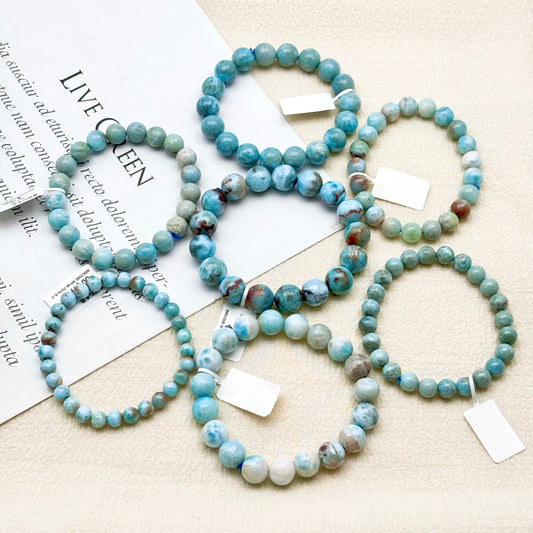 Wholesale prices — 80%: New crystal bracelets , minimum order of 1KG. Choose from Larimar, Plum blossom Tourmaline, prasiolite, Red Calcite, Strawberry Quartz, and more...