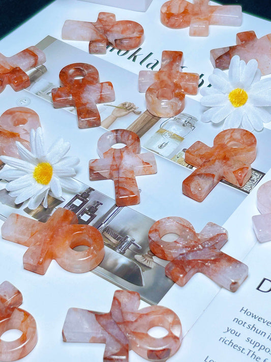 Crystal Pewter Ankh Egyptian Cross with Celtic Knots Pendant with Fire Quartz OCTOBER Birthstone